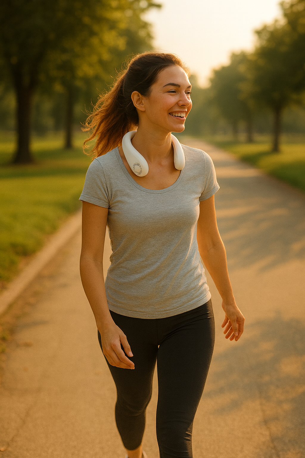 Son design sans pales est léger et se fond à votre cou. Oubliez-le et profitez de la brise constante.